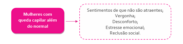 A perda de cabelo pode ter um impacto psicológico negativo significativo na vida das pessoas, porém, as mulheres acabam sofrendo mais que os homens, já que o cabelo tem uma relevância psicológica e social para elas.