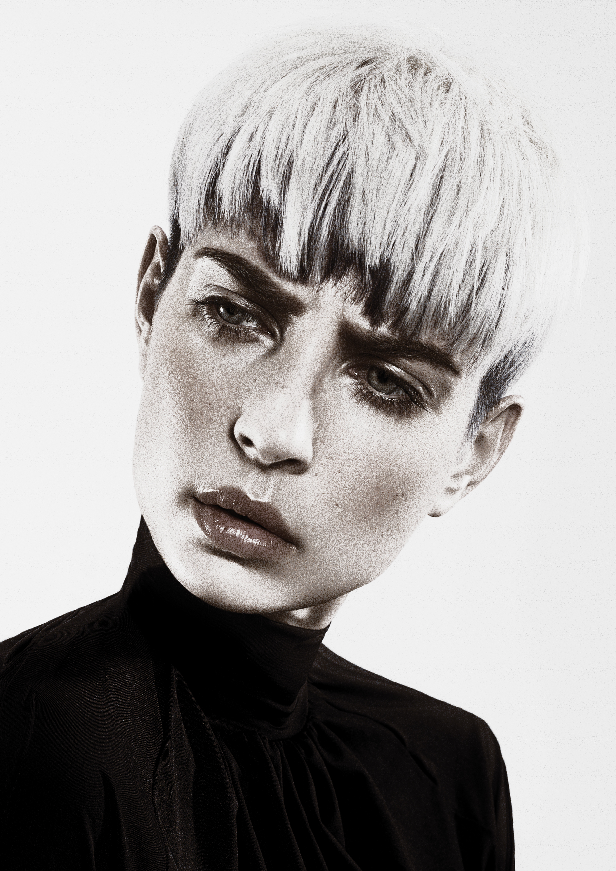 Petra Měchurová aprofunda ainda mais sua abordagem minimalista para cortes de cabelo e complementa-os com detalhes acentuados. O estilo apresenta destaques únicos e o conceito de cores contrastantes com transições suaves ressaltam as qualidades do rosto e, muitas vezes, despertam a feminilidade negligenciada. No entanto, a coleção vai de encontro à principal tendência real – cabelos curtos.