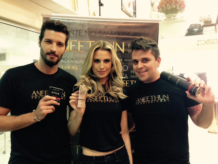 Fernanda Keulla participa neste momento, dia 17 de agosto, no Rio de Janeiro, do lançamento da linha Style Professional da Aneethun, marca nacional de cosmética capilar que lança a exclusiva linha para finalização de penteados. Junto do modelo e ator Leandro Lima, a ex-BBB e apresentadora será penteada pelo hair stylist da marca, Gui Andrade e a dupla já é a sensação do evento que reuniu a imprensa especializada e convidados. A coordenação do encontro é da publicitária Fabiane Faria, responsável pelo marketing da marca.