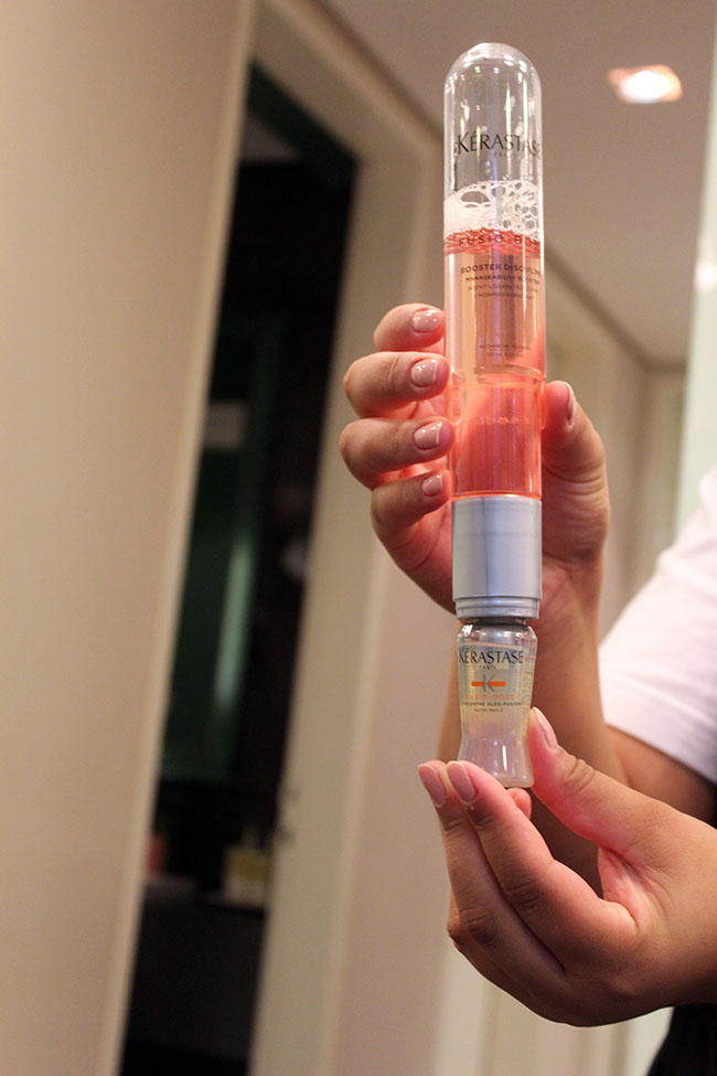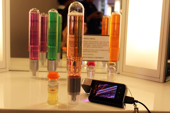 Na quarta-feira (30.03) aconteceu no salão Care, em Ipanema, o evento de lançamento do novo ritual de tratamento personalizado de Kérastase Fusio-Dose. São cinco novos boosters, 15 vezes mais concentrados do que os anteriores. A transformação é instantânea e de acordo com o tipo de cabelo. Com uma câmera diagnóstica, capaz de aumentar 600 vezes a imagem do couro cabeludo e do perímetro dos fios, o profissional decide a combinação ideal. São 5 boosters e 4 ampolas que, misturados, resultam em 20 combinações que oferecem nutrição, força, brilho, aumento da densidade e segurança da cor.