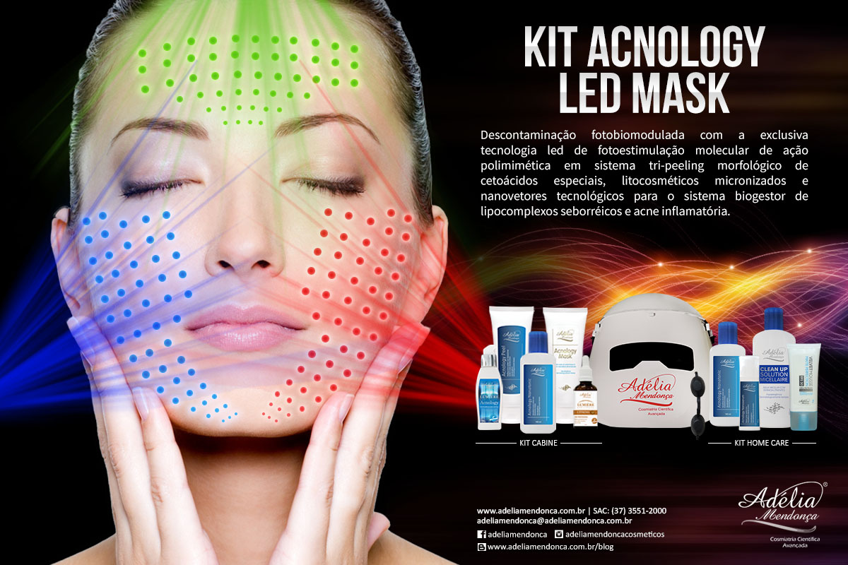 Um dos maiores desafios para o profissional de estética consiste em tratar essa disfunção sem o risco da recidiva. Para evitar esse quadro, a linha Adélia Mendonça Cosméticos, desenvolveu o Kit Acnology Lumière Led Mask, um novo e revolucionário conceito em tratamento profissional, a descontaminação fotobiomodulada, que agrega ao tratamento acneico, uma proposta cosmiátrica eficaz com a associação da fototerapia e dermocosméticos específicos.